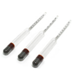 Glass thermometer Needle type 300 mm in mercury or red toluene filled up 0-1000°C range and Hydrometer of 300 mm having combined range of sp. gr. 1-2 and Beaume 0-70Be for determining the strength of any electrolyte.